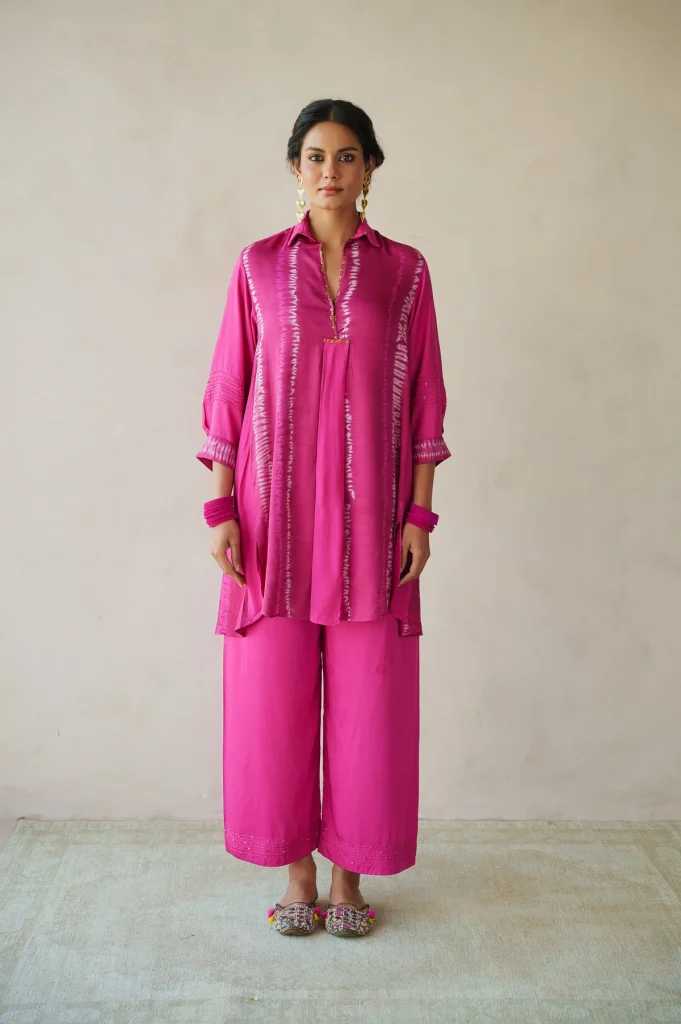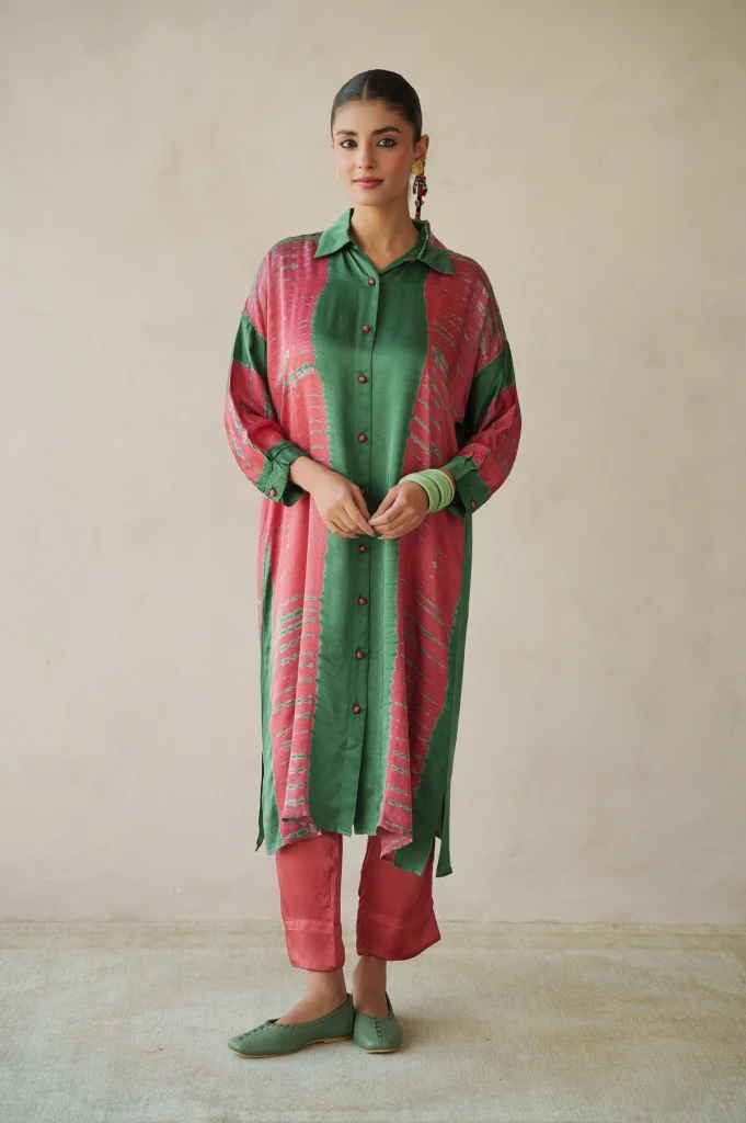 * Modal Satin Tie and Dye shirt Kurta with pants.