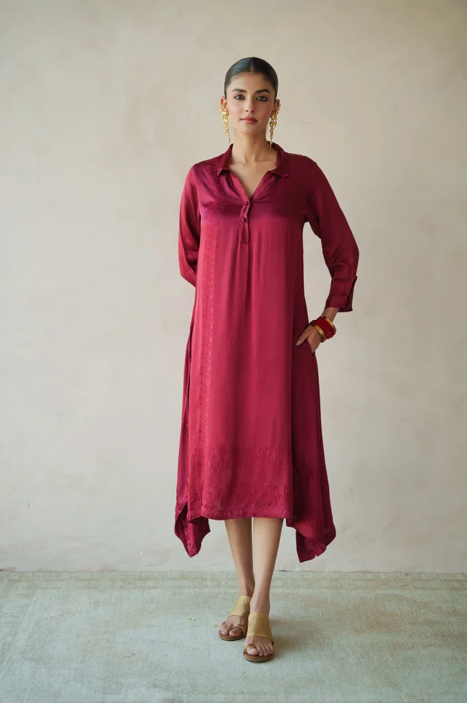 * Sultani tuck and gudri stitch in contrast red at yoke, shoulders & sleeves