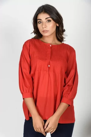 Mulmul Cotton Karma Top with Fine Tucks – Red
