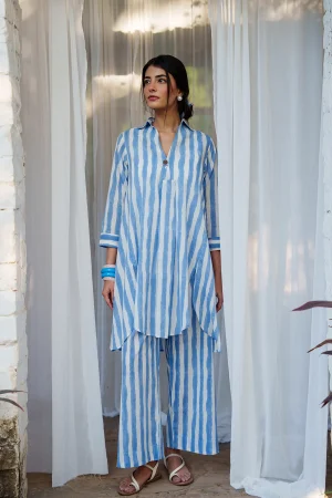 ₹4,400.00* Cotton mulmul handblockprinted co-ord set. * Finished with French seam. * Estimated ship time: 5 - 7 working days. * The garment color may vary slightly due to photographic lighting or the screen settings of your device. * Please check the measurement chart and return policy before placing the order. * Model is wearing size ’s’