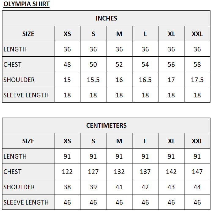 GARMENT SIZE CHART.