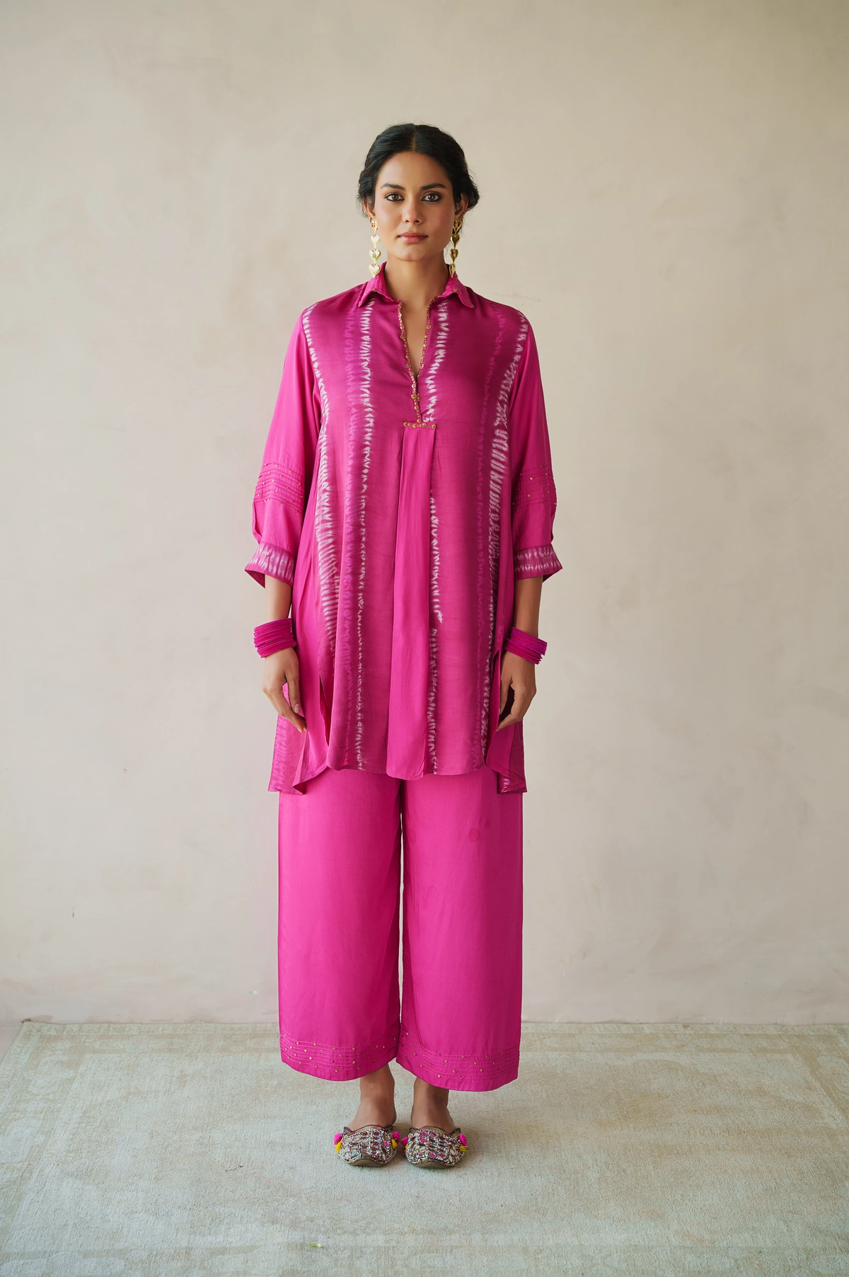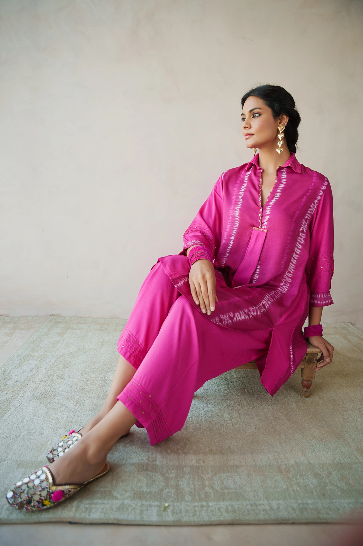 Angrakha Kurta with Pants, crafted from premium Chanderi fabric and featuring exquisite gota and dori detailing. This stunning ensemble is perfect for festive occasions and special celebrations, effortlessly combining tradition and style.