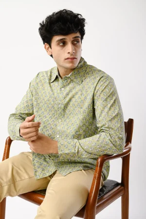 ₹1,800.00* Handblock Printed full sleeves shirt with collar. * Buttoned up shirt with a pocket on chest. * Estimated ship time: 5 - 7 working days. * The garment color may vary slightly due to photographic lighting or the screen settings of your device. * Please check the measurement chart and return policy before placing the order. * Model is wearing size ’S’