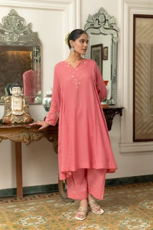 The Marcia Kurta set showcases delicate embroidery that adds a touch of charm and sophistication, making it stand out in any setting. Made from soft and breathable cotton mulmul, this outfit ensures you stay comfortable throughout the day. The pants are designed for a relaxed fit, perfectly complementing the kurta for a cohesive look.