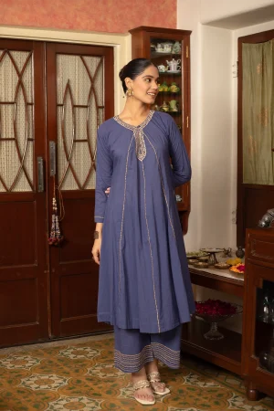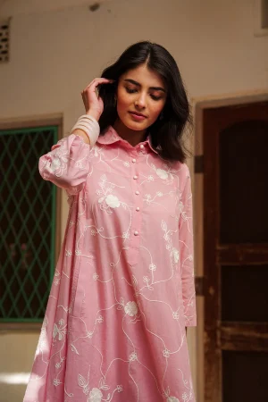 ₹5,300.00- Embroidered Cotton Kurta with Pants.