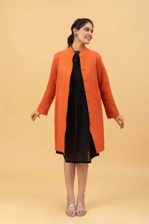 Our Straight Jacket, a stylish mid-length women's jacket crafted from hand-quilted modal silk. Featuring a soft cotton lining, this jacket combines comfort with elegance, making it perfect for any occasion. The contemporary design and chic silhouette provide a flattering fit, while the luxurious fabric adds a touch of sophistication.