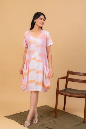 ₹3,950.00Our stunning linen and cotton dress, beautifully crafted with a gradient dye technique in shibori. Perfect for day wear, this lightweight dress offers breathability and comfort, making it ideal for warm weather. The unique shibori patterns add an artistic touch, ensuring you stand out effortlessly.
