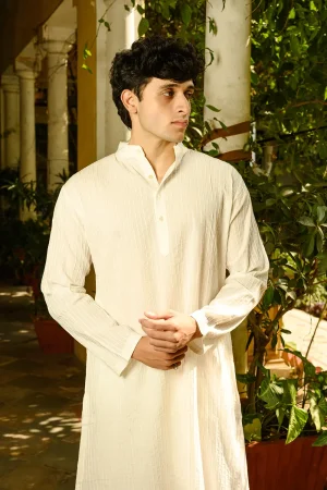 ₹2,950.00* White fine pintuck kurta with chinese collar. * Full sleeves and 2 pockets on the sides. * Estimated ship time: 5 - 7 working days. * The garment color may vary slightly due to photographic lighting or the screen settings of your device. * Please check the measurement chart and return policy before placing the order. * Model is wearing size ’S’