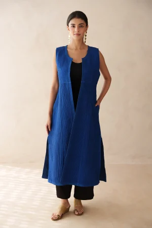 ₹8,200.00| * Sleeveless silk quilted Long jacket. * Cotton lining * Pockets. * Estimated ship time: 5 - 7 working days. * The garment color may vary slightly due to photographic lighting or the screen settings of your device. * Please check the measurement chart and return policy before placing the order. * Model is wearing size ’s’ |