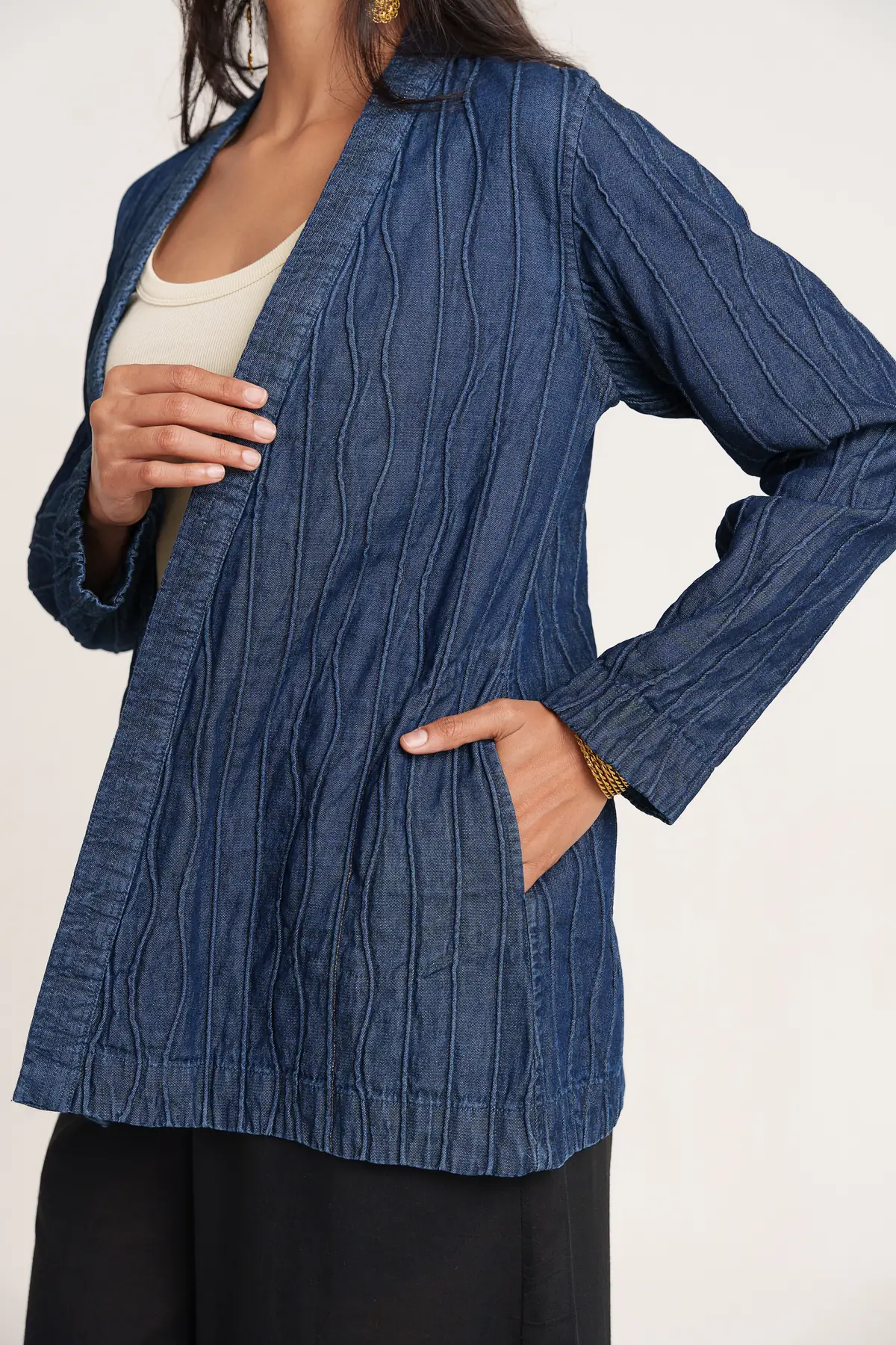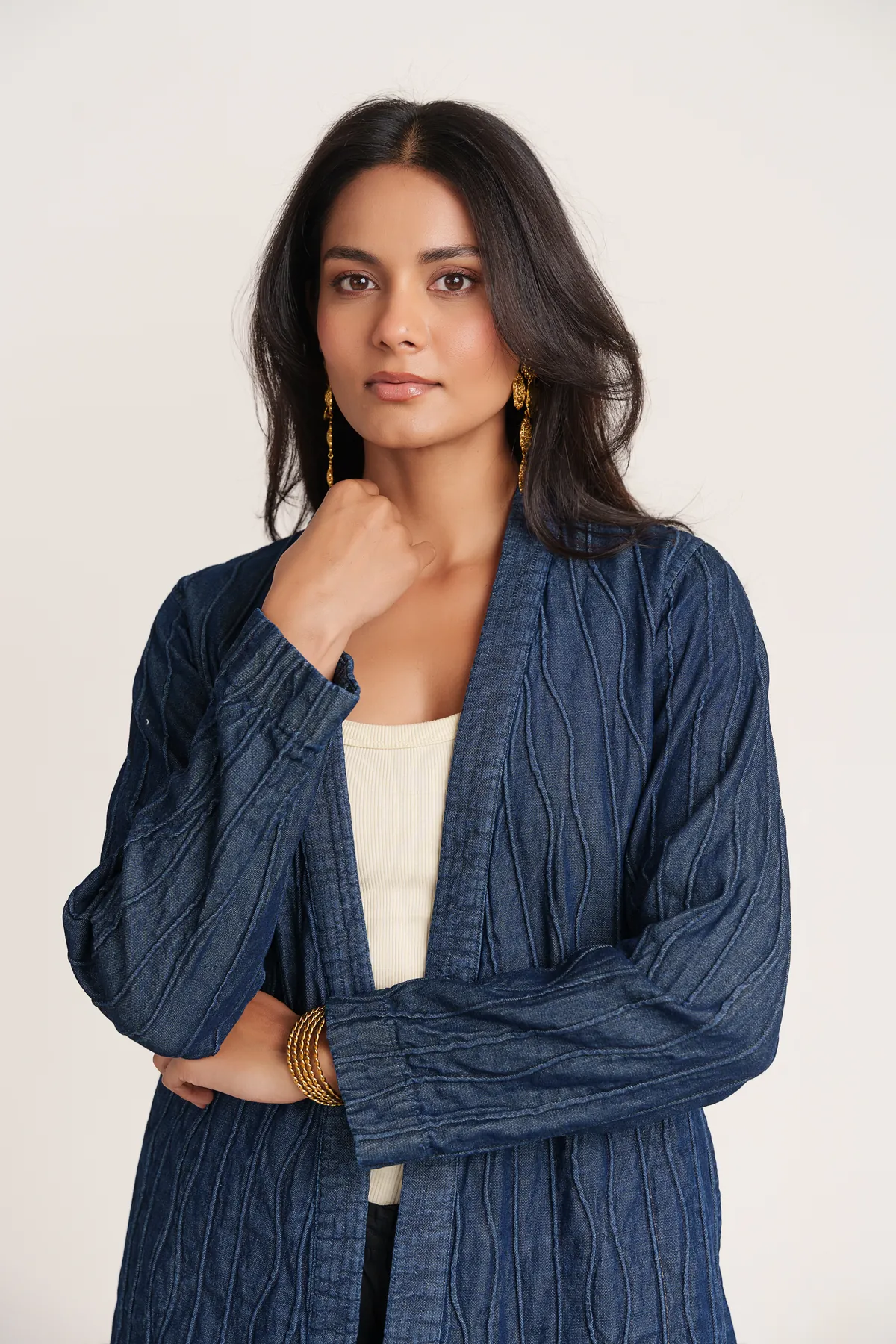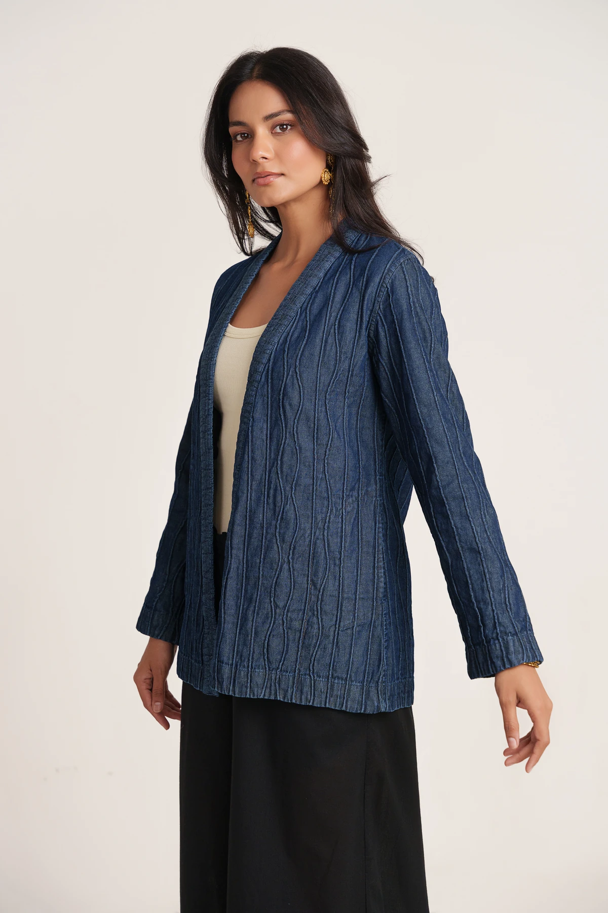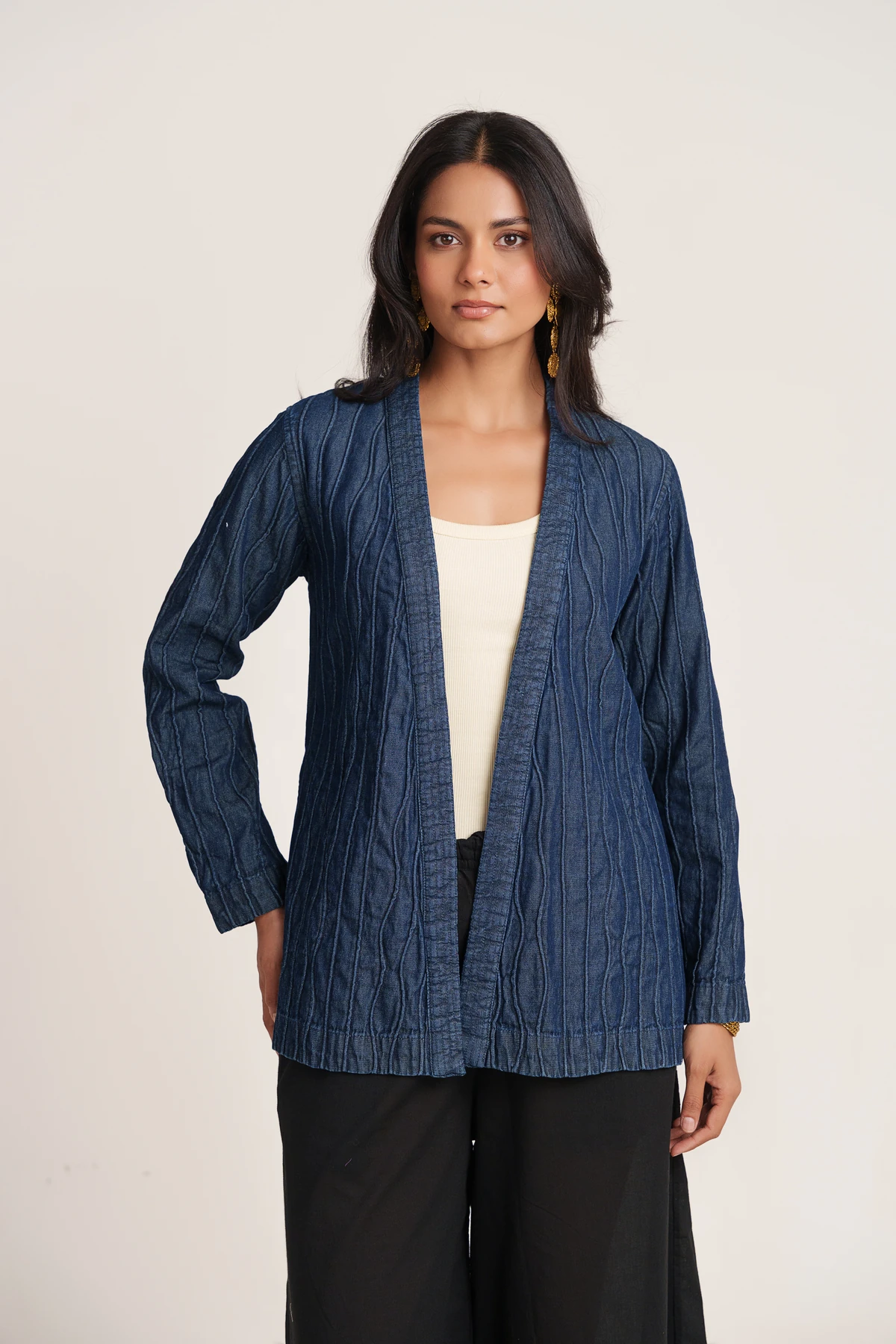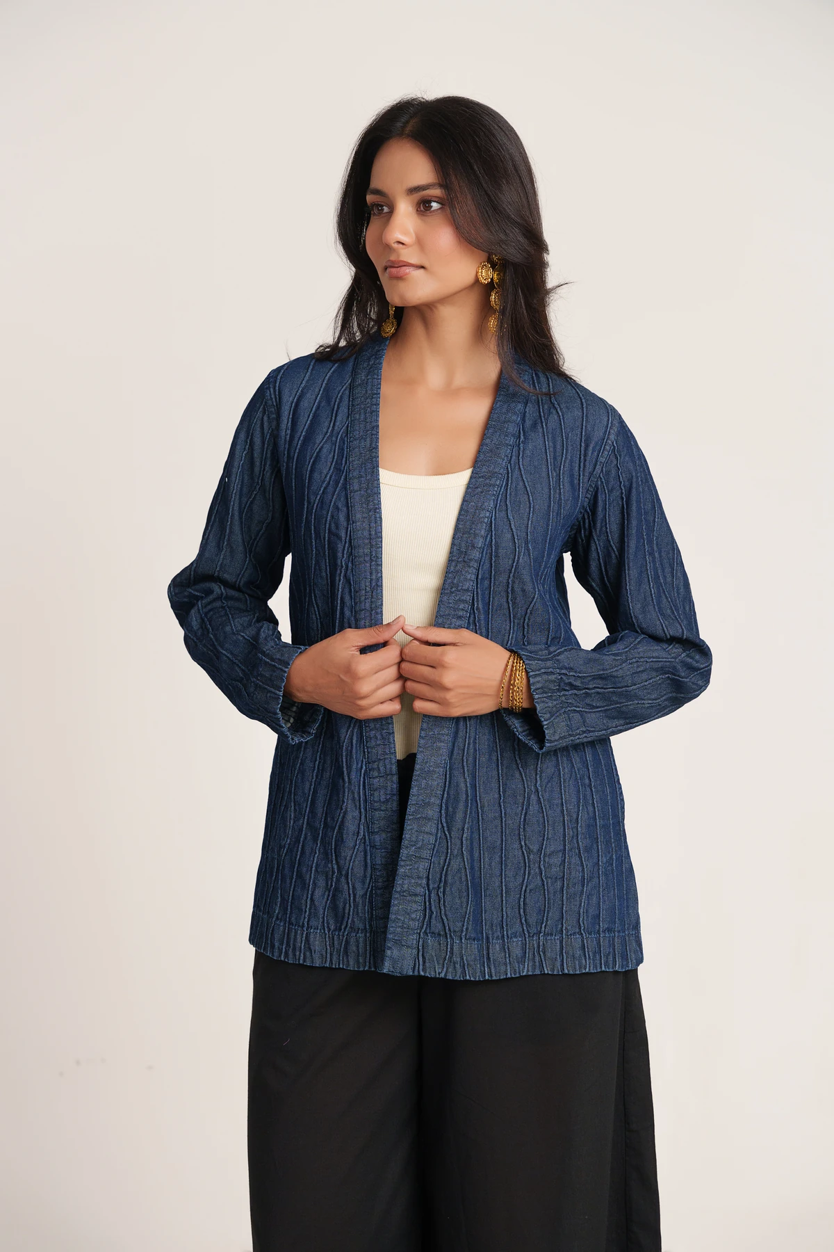 | A fresh take on casual layering, this Front-Open Denim Jacket features an eye-catching random dori stitch pattern that adds texture and character. Designed with a comfortable cotton lining and functional pockets, it’s the perfect blend of style and ease. Pair it with dresses, shirts, or tees — this versatile jacket instantly gives your look a cool, laid-back edge. |