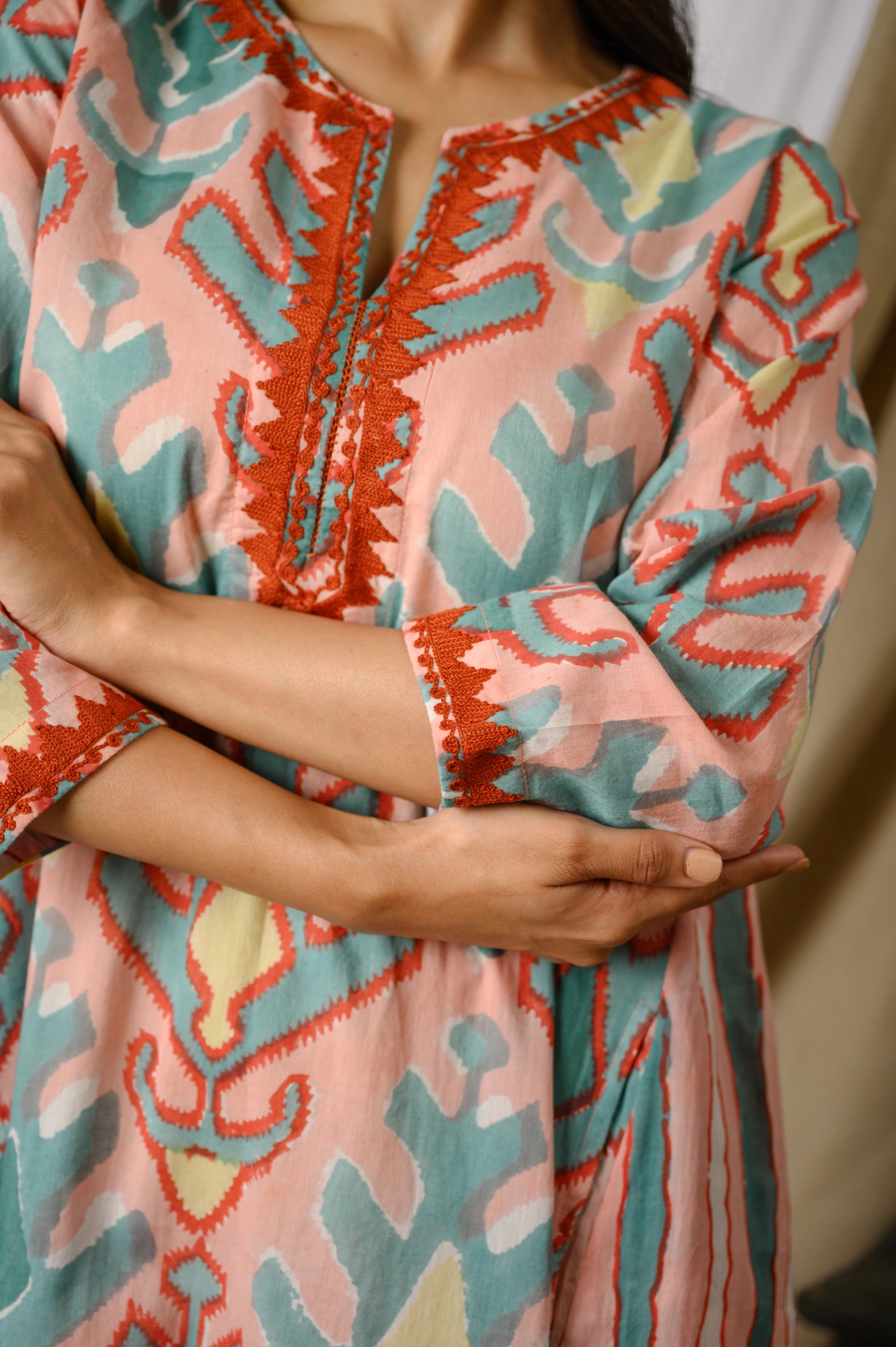 Elevate your everyday style with the Manu Kurta, a timeless piece crafted in soft, breathable cotton. This straight-line kurta features two unique handblock prints that blend tradition with contemporary charm. Thoughtfully detailed with delicate embroidery at the neckline and cuffs, it adds a subtle touch of elegance.