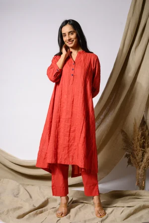 * A-line Cotton red kurta.