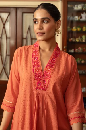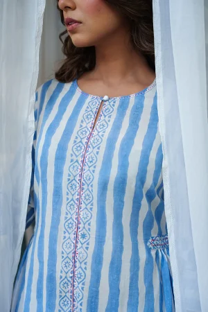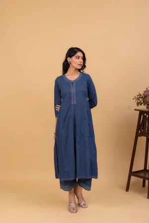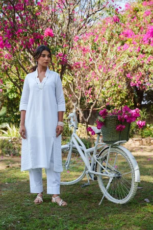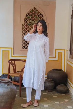 ₹5,000.00The Marcia Kurta set showcases delicate embroidery that adds a touch of charm and sophistication, making it stand out in any setting. Made from soft and breathable cotton mulmul, this outfit ensures you stay comfortable throughout the day. The pants are designed for a relaxed fit, perfectly complementing the kurta for a cohesive look.