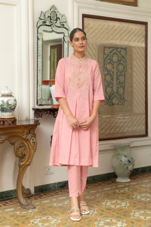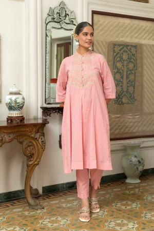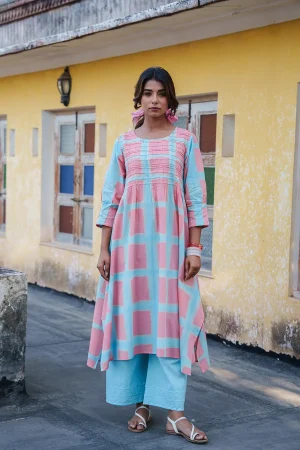 ₹5,000.00- Cotton Mul A-line Kurta with pants.