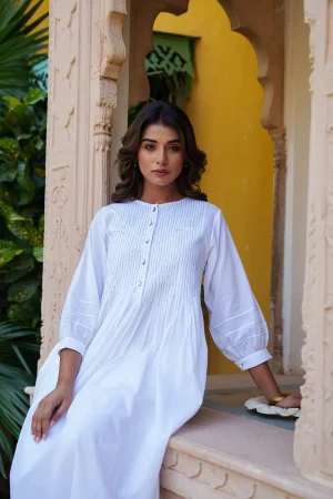 - Pintuck detailing in front, back, and sleeves of the kurta.