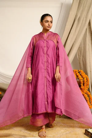 *Cotton Mul Kaftan * Contrast colour gudri detailing on front, back yoke and shoulders. *Box pleating below front and back yoke to give a flared look. * Finished with French seam. *  Estimated ship time: 5 - 7 working days. * The garment color may vary slightly due to photographic lighting or the screen settings of your device. * Please check the measurement chart and return policy before placing the order. * Model is wearing "Free Size"